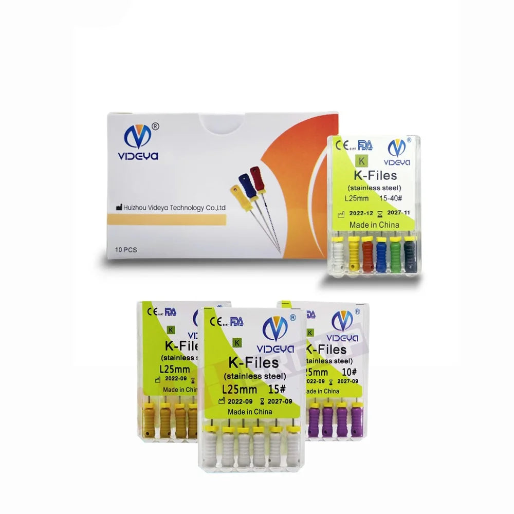 High-quality stainless steel K files designed for manual root canal instrumentation. Provide excellent flexibility, cutting efficiency, and tactile control during cleaning and shaping of root canals.